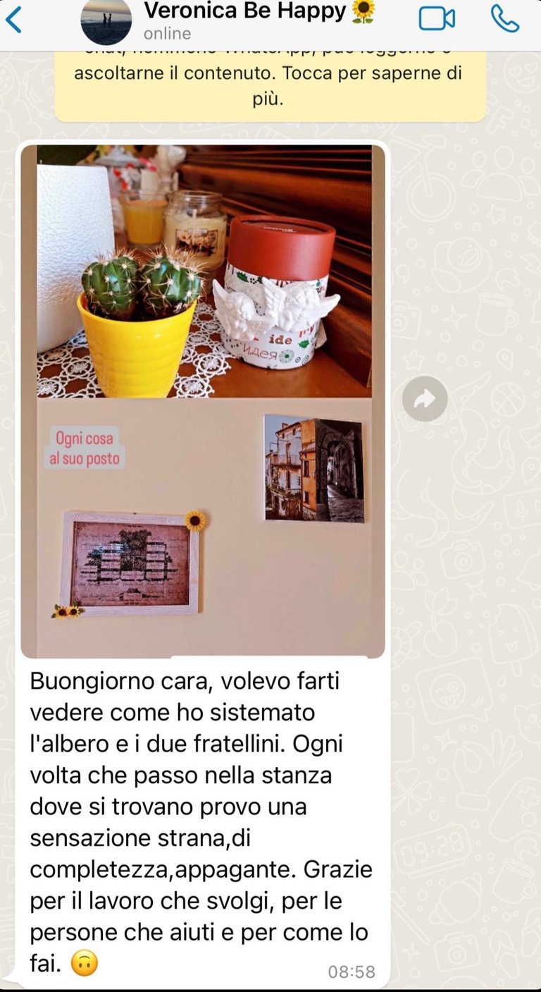 Sono nata ad Agrigento, ma ho sempre vissuto a Bassano del Grappa. Sono sempre stata spinta dalla necessità di indagare nella mia famiglia, perché c'erano delle problematiche alla quale le risposte erano molto difficili da trovare, e così, ho cercato di capirne sempre di più. Cresciuta con un Costellatore Familiare laureato alla hellinger schule, che è il papà dei miei fratelli, ho deciso di intraprendere questo percorso e mi sono diplomata in psicogenealogia e genogramma, e psicogenealogia applicata.